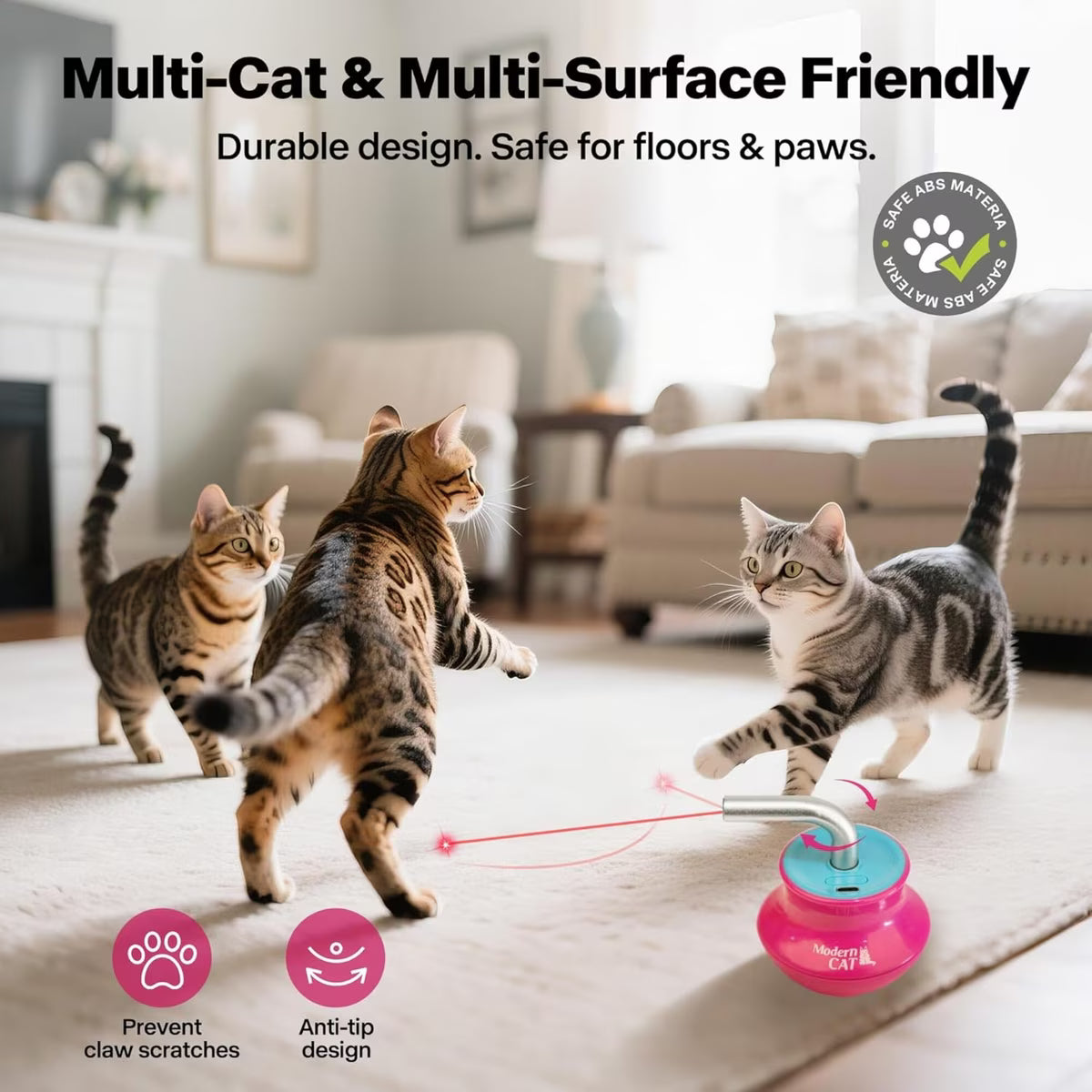 Le jouet gyroscope laser laser All For Paws est la façon parfaite de divertir votre ami félin pendant des heures. Ce jouet interactif est conçu pour capter l’attention de votre chat et encourager le jeu actif. Avec un pointeur laser projetant un point en mouvement et une base oscillante créant des mouvements imprévisibles, les instincts de chasse de votre meilleur ami seront pleinement activés. Les mouvements erratiques poussent votre chat à traquer, poursuivre et bondir, offrant à la fois de l’exercice physique et mental. Que votre poilet préfère jouer seul ou avec vous, ce jouet vous offrira sans cesse un plaisir et un engagement sans fin. Parfaite pour jouer à l’intérieur, elle garantit que votre chat reste actif, en bonne santé et heureux.