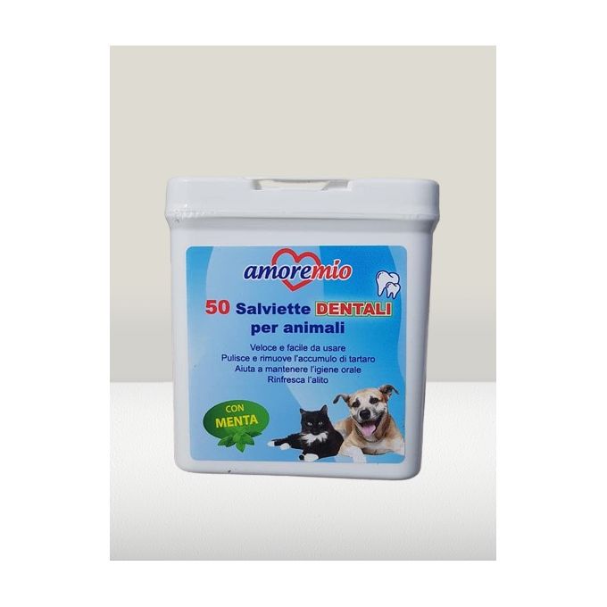 Nettoyez les dents de votre animal facilement et efficacement avec les lingettes dentaires Amore Mio. Conçues pour lutter contre la plaque, la mauvaise haleine et l’accumulation de tartre, elles assurent une hygiène bucco-dentaire optimale sans brossage.
