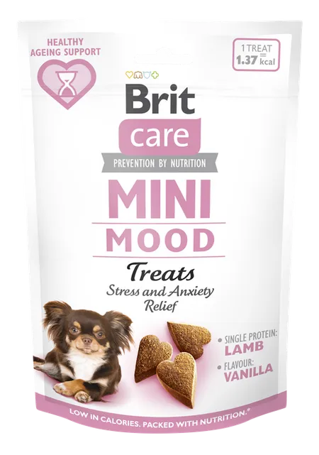 Les mini friandises Brit Care répondent à ces besoins avec une faible valeur calorique, une teneur élevée en ingrédients fonctionnels et une composition équilibrée soutenant la santé et l’état des petits chiens.