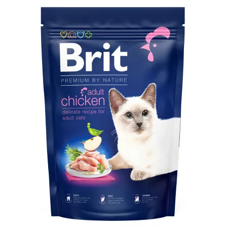 Nourriture complète pour chats Brit Premium - recette au poulet pour chats adultes.