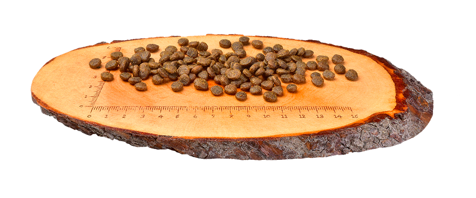 crude protein 30.0%, crude fat 17.0%, moisture 10.0%, crude ash 8.2%, crude fiber 3.5%, calcium 1.6%, phosphorus 1.3%, sodium 0.3 %, Omega-3 fatty acids 0.6%, Omega-6 fatty acids 1.8%, EPA (20:5 n-3) 0.08%, DHA (22:6 n-3) 0.1%.