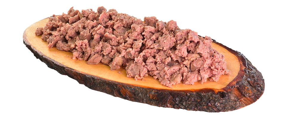 FRESH BAG WITH PIECES OF MEAT AND ANIMAL ORGANS IN PATE. A COMPLETE FOOD OR A TASTY SIDE SIDE FOR CROQUETTES. UNIQUE TYPES OF MEAT. NO GRAINS, NO POTATOES, NO GMO, NO SOY, NO PRESERVATIVES, NO COLORANTS. HIGH MEAT CONTENT OF 85%.