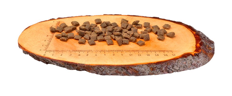 ground dehydrated wild boar meat (35%), ground dehydrated free-range lamb meat (24%), yellow peas (19%), chicken fat (preserved by tocopherols, 6%), apples (4%) , chicken liver (3%), tapioca starch (3%), salmon oil (2%), carrots (1%), flax seeds (1%), chickpeas (1%), hydrolyzed shellfish shells (source of glucosamine, 0.026%), cartilage extract (source of chondroitin, 0.016%), brewer's yeast (source of manno-oligosaccharides, 0.016%), chicory root (source of fructo-oligosaccharides, 0.012%), Yucca schidigera (0.01%), algae (0.01%), psyllium (0.01%), thyme (0.01%), rosemary (0.01%), oregano (0.01%), cranberries ( 0.0008%), blueberries (0.0008%), raspberries (0.0008%).