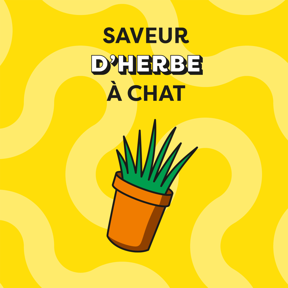 Additifs par kg: Antioxygènes et Colorants; Additifs nutritionnels: Vitamine A: 1293 UI, Vitamine B₁: 9.9 mg, Vitamine B₂: 16.9 mg, Vitamine B₆: 4.4 mg, Vitamine D₃: 143 UI, Vitamine E: 115 mg, Cuivre (Sulfate de cuivre (II) pentahydraté): 6.1 mg, Iode (Iodure de potassium): 1.5 mg, Manganèse (Sulfate manganeux, monohydraté): 14.1 mg, Zinc (Sulfate de zinc, monohydraté): 70.5 mg / Additifs sensoriels: Arôme d’Herbe à chat: 11.9 mg.