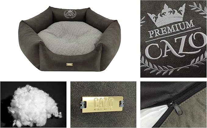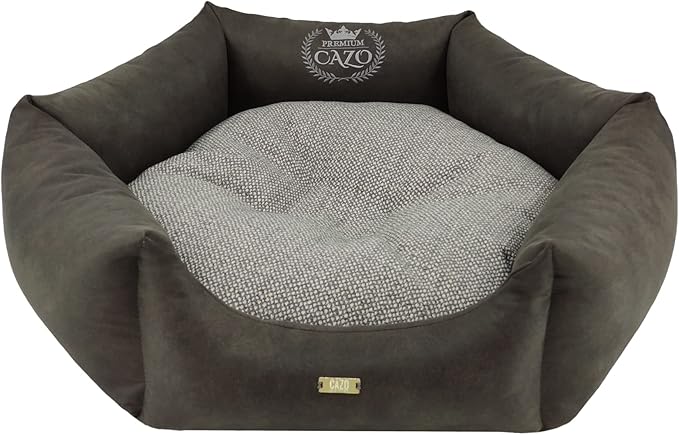 Lit exclusif pour chien ou chat de la marque Cazo. Extérieur en simili-cuir de haute qualité combiné à un tissu exceptionnellement doux. Le lit est équipé d'une housse amovible, lavable à 30 degrés.