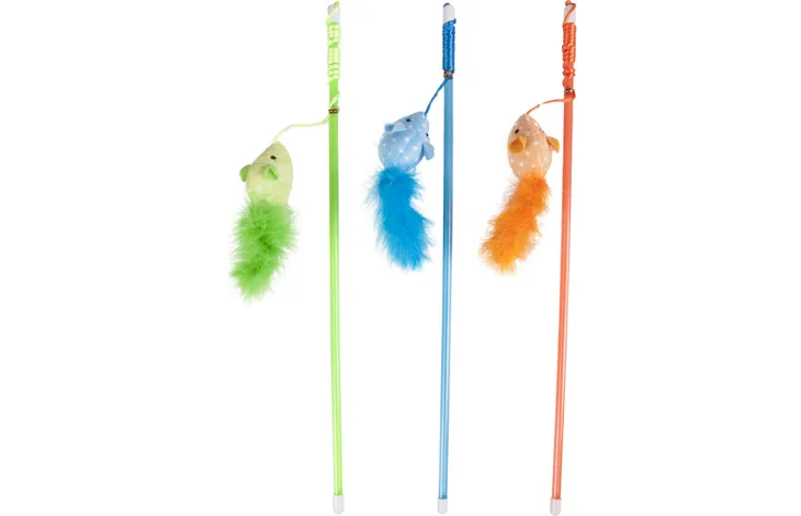 Laissez votre chat jouer pendant des heures avec ces cannes à pêche accrocheuses avec une souris! Parfait pour leur instinct de chasse naturel. Disponible dans différentes couleurs, celle que vous recevrez sera une surprise!