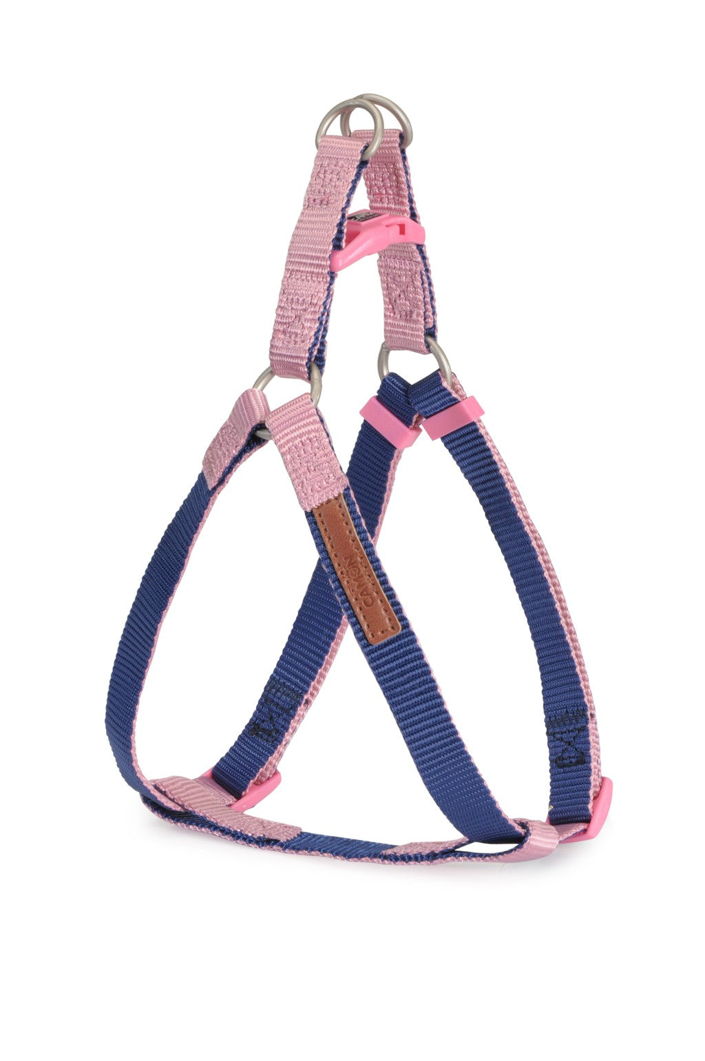 2 One Touch adjustment harness. Available in 4 different sizes and 7 two-tone colors. It pairs perfectly with the respective adjustable collars, 3-setting “H” harness and leash for a coordinated outfit.