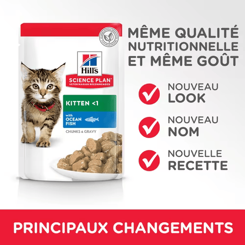 Your kitten will love the delicious taste of these tender bites in HILL'S sauce SCIENCE PLAN Kitten with fish. This wet food contains the perfect balance of taste and nutrition for your kitten. Perfectly balanced nutrition to provide kittens up to 1 year old with all the energy they need to grow well and reach their ideal weight.