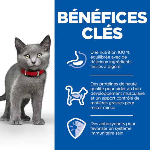 RECOMMENDED BY VETERINARIANS WORLDWIDEThe food HILL'S SCIENCE PLAN for spayed kittens provides delicious, complete and balanced nutrition for the optimal development & immune support of spayed kittens, so that they get a good start in life & develop to their maximum potential. A 100% balanced diet with tasty and easy-to-digest ingredients. High quality proteins for muscle development and controlled fat content to maintain a slim figure. Antioxidants to support a healthy immune system.