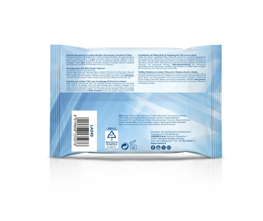 Lingettes nettoyantes très pratiques pour votre animal de compagnie, à garder toujours à portée de main : à la maison et en déplacement, pour nettoyer la fourrure et les pattes, éliminer les mauvaises odeurs, nettoyer le museau et les oreilles.