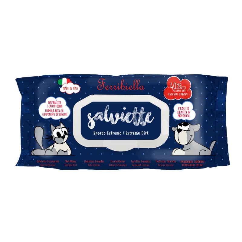 Ferribiella wipes are neutral and alcohol-free, designed for the perfect daily cleanliness of your puppy, dog, kitten and cat. The wipe removes dust, secretions and impurities in accordance with the ISO eye PH without causing irritation or redness. It cleans, refreshes, deodorizes and makes the hair shine. The wipe acts deeply and neutralizes bad odors.