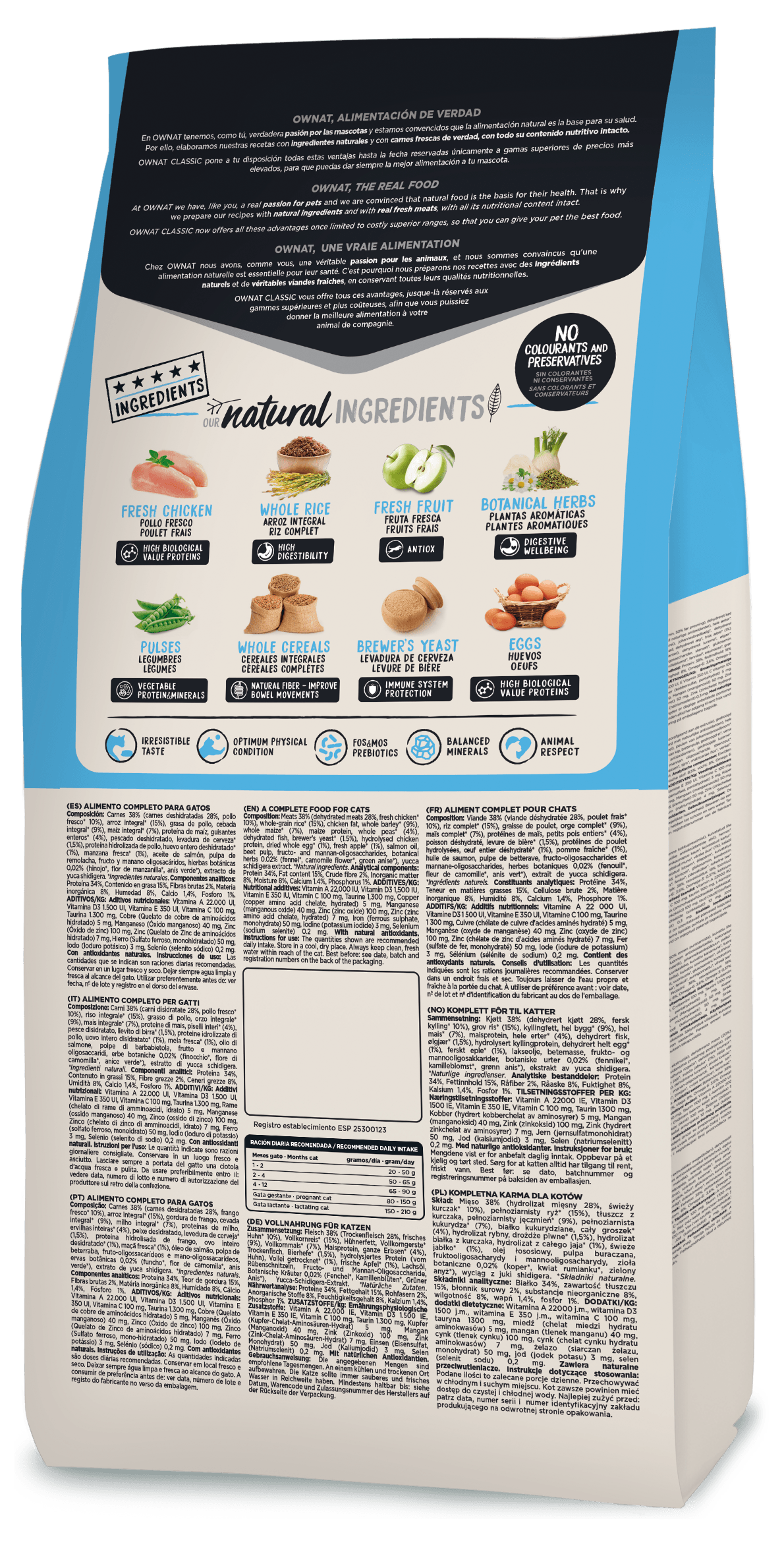 The quantities indicated are the recommended daily rations. Store in a cool, dry place. Always leave clean, fresh water within reach of the cat. Expiry: 18 months.
