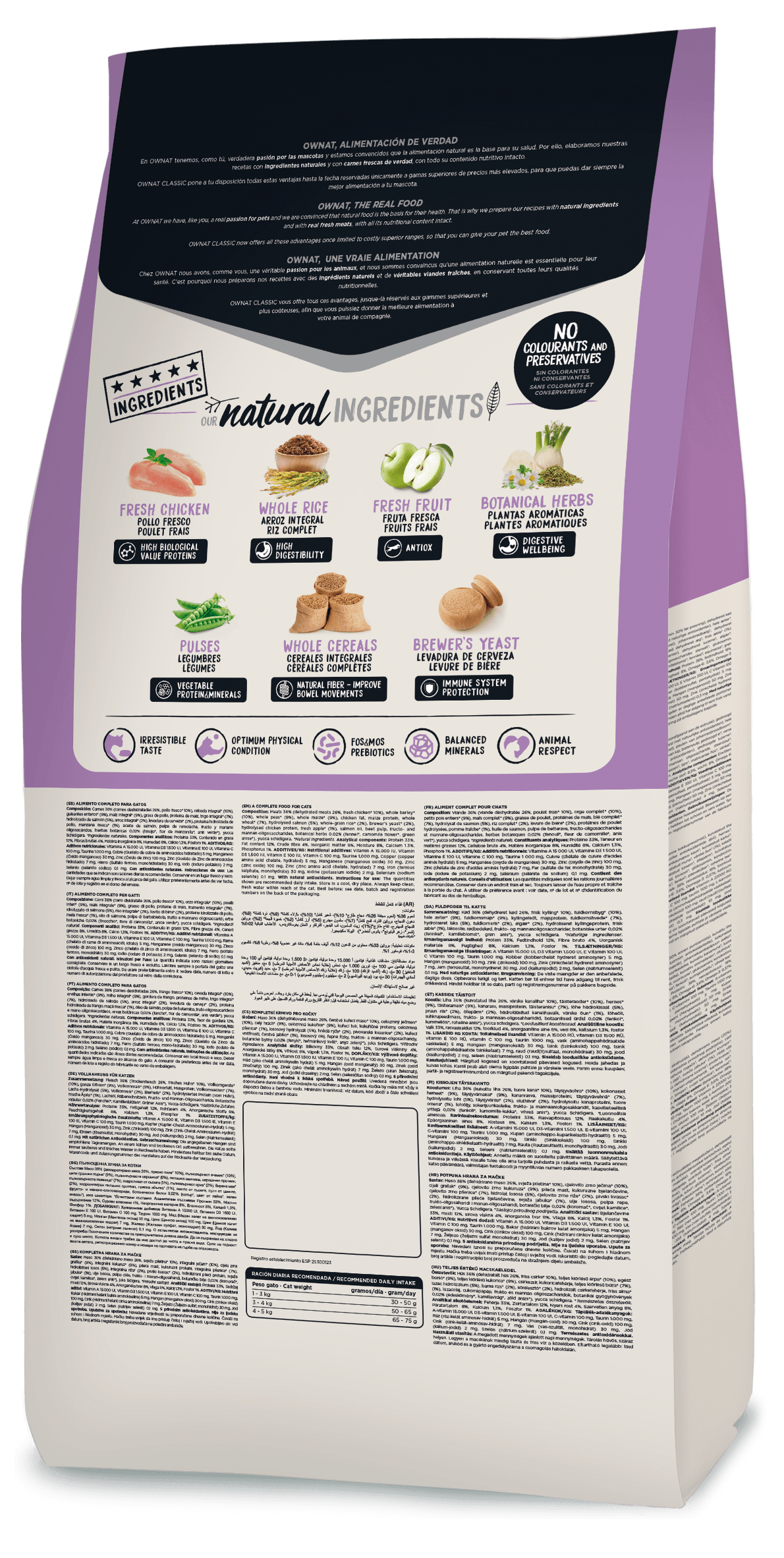 The quantities indicated are the recommended daily rations. Store in a cool, dry place. Always leave clean, fresh water within reach of the cat. Expiry: 18 months.