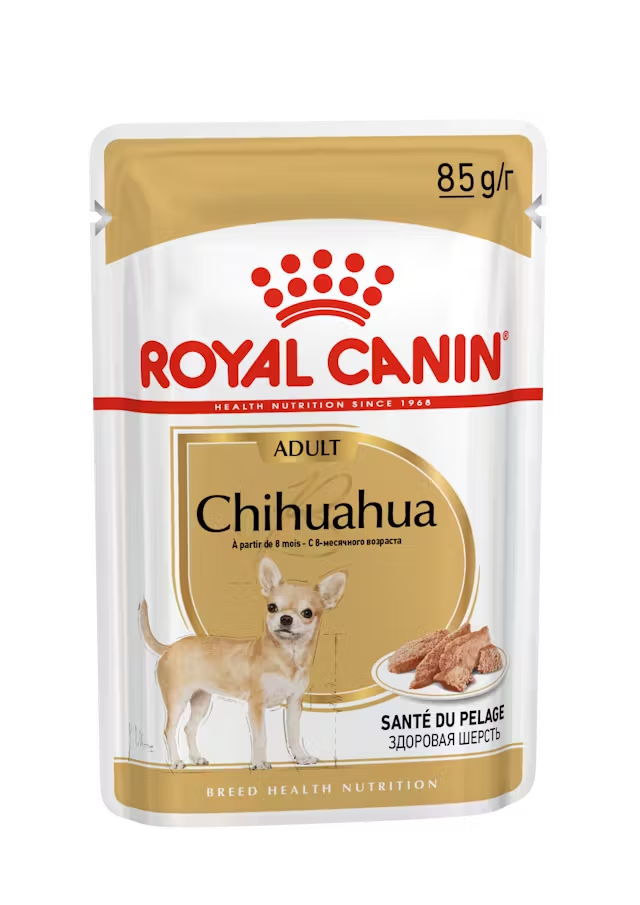 ROYAL CANIN® Chihuahua en Mousse est spécialement formulé pour répondre à tous les besoins nutritionnels de votre chien adulte et convient aux Chihuahuas de plus de 8 mois. ROYAL CANIN® Chihuahua en Mousse est conçu pour favoriser le transit de votre chien en bonne santé et contient également les nutriments nécessaires à l’entretien de la peau et du pelage des Chihuahuas. La texture de la formule ROYAL CANIN® Chihuahua en Mousse est spécialement adaptée pour augmenter et satisfaire l’appétit des Chihuahuas les plus capricieux ! Sa texture moelleuse, idéale pour les mâchoires d’une race miniature comme le Chihuahua, facilite la mastication et favorise une ingestion et une digestion de la nourriture optimales. Pour répondre aux préférences individuelles de chaque chien, ROYAL CANIN® Chihuahua en Mousse est également disponible sous forme de nourriture sèche en croquettes savoureuses et croquantes. Si vous envisagez une alimentation mixte, il vous suffit de suivre nos instructions pour vous assurer que votre chien reçoit la quantité de nourriture sèche et humide nécessaire pour un bénéfice optimal.