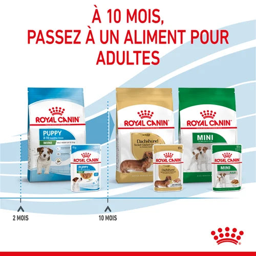 | Estimated adult weight | 85g bag Puppy Mini in sauce | 2 months | 3 | 4 | 5 | 6 | 7 | 8 | 9 | 10 | 11 |