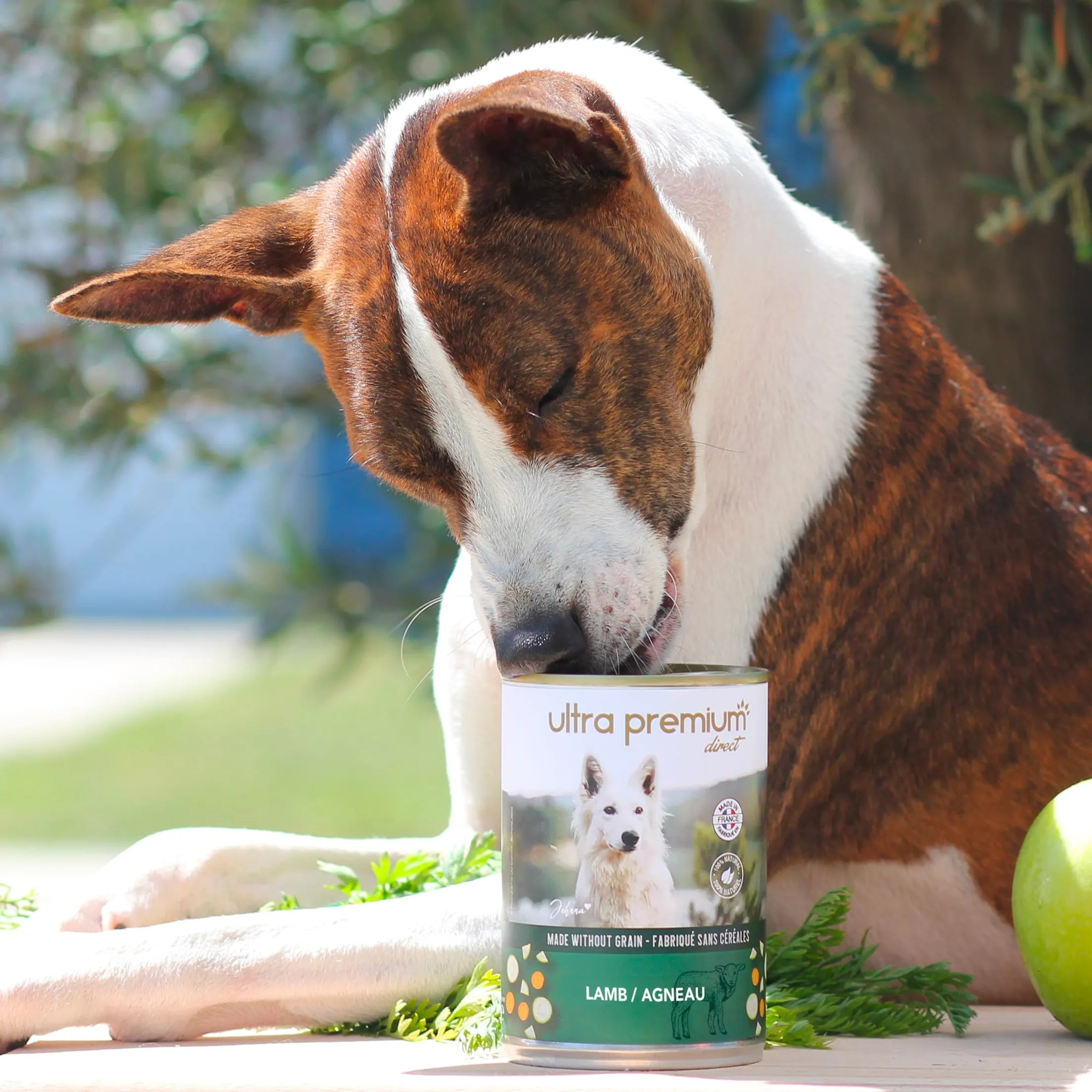 Notre pâtée est fabriquée selon un procédé de cuisson lente destiné à conserver les qualités nutritionnelles des ingrédients. Les ingrédients d'origine animale, les fruits et les légumes sont utilisés au maximum sous forme fraîche. Nous n’utilisons jamais d’ingrédients sous forme déshydratée. L'agneau est d’origine française.