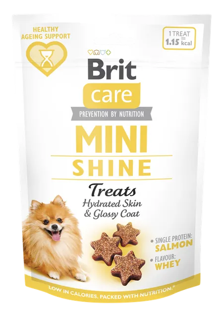 Les mini friandises Brit Care répondent à ces besoins avec une faible valeur calorique, une teneur élevée en ingrédients fonctionnels et une composition équilibrée soutenant la santé et l’état des petits chiens.