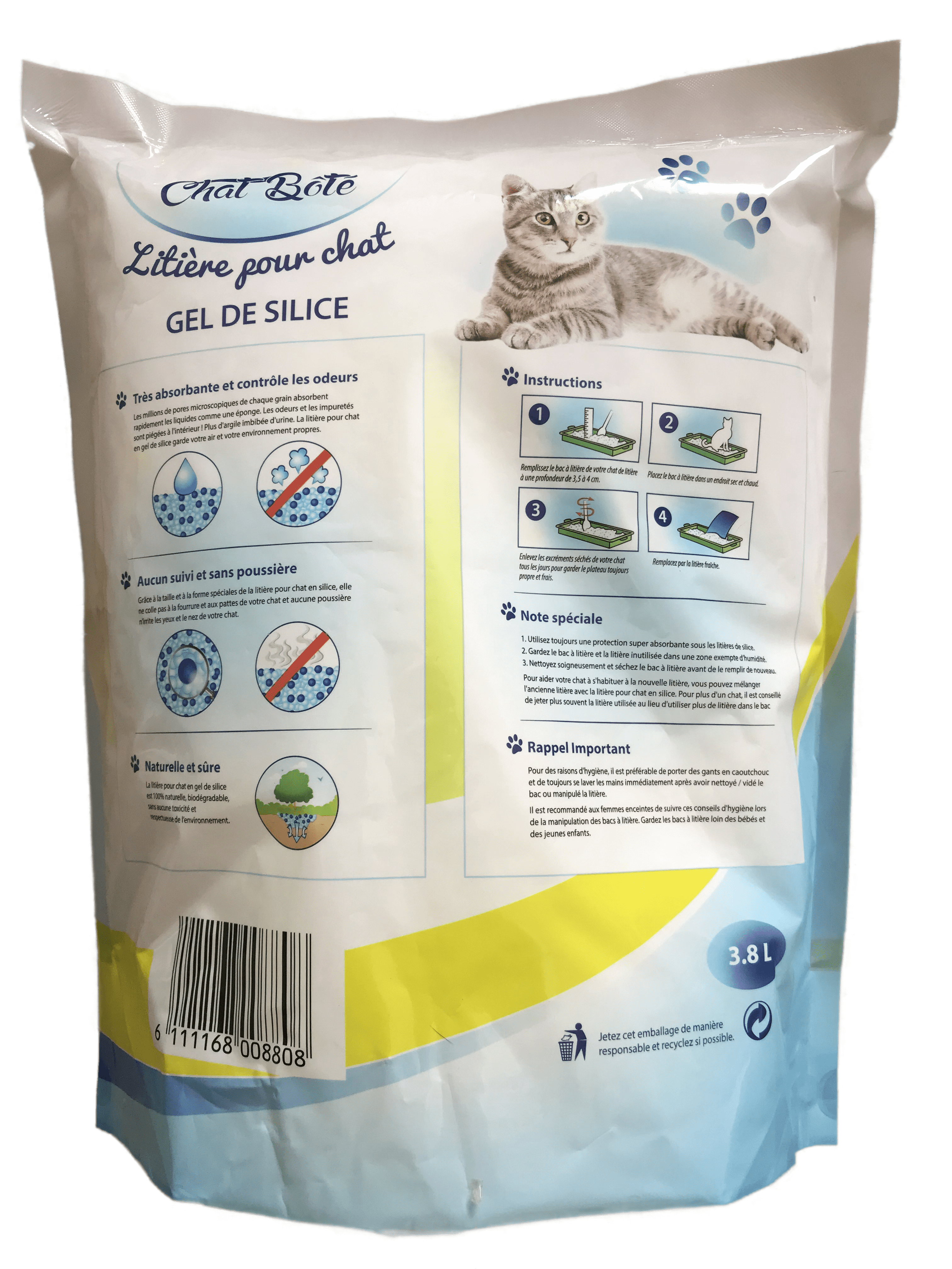 La litière pour chat en gel de silice est 100% naturelle, biodégradable, sans aucune toxicité et respectueuse de l'environnement.