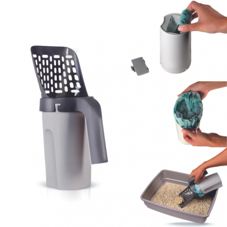Ce système innovant 2-en-1 vous permet de ramasser la litière sale de votre chat et de les décheter en une seule étape.