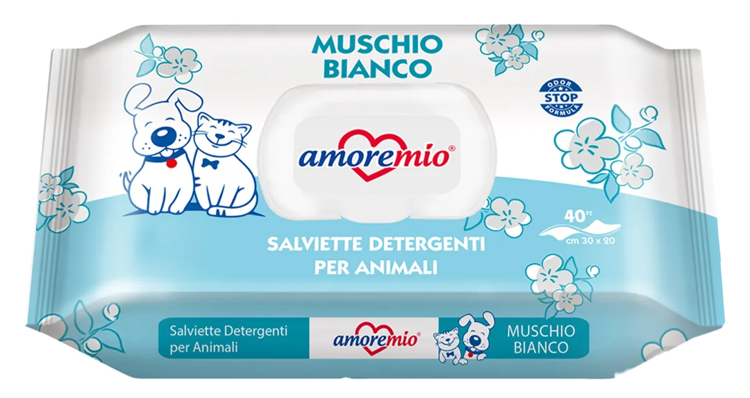 Les lingettes nettoyantes humides douces d’AmoreMio sont idéales pour le nettoyage quotidien de nos amis à quatre pattes. Ils conviennent pour un nettoyage rapide et en douceur du pelage, des pattes, de la peau sans provoquer d’irritation ou de rougeur donnant une sensation de fraîcheur. Convient aux chiens et aux chats. Avec un parfum de musc blanc.