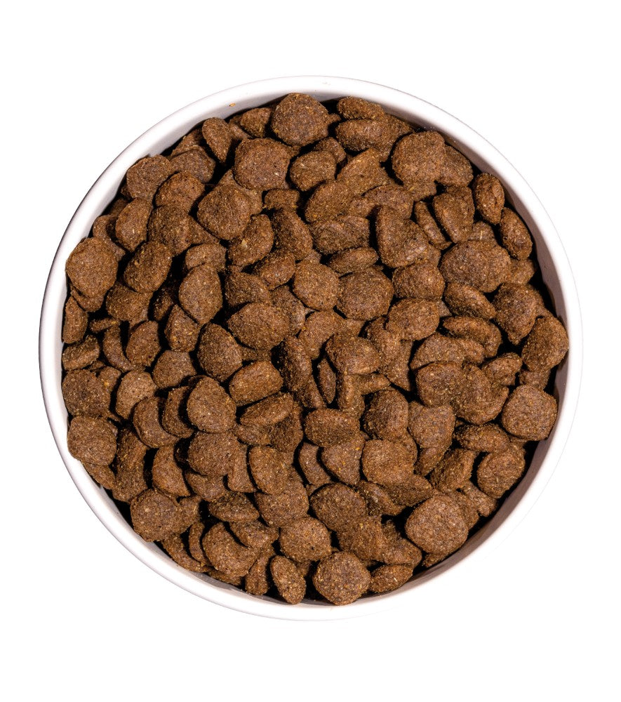 Poulet frais* (min. 15% avant la cuisson), dinde fraîche* (min. 15% avant la cuisson), poulet déshydraté (14%), patate douce déshydratée* (8%), petits pois entiers* (7%), riz complet* (7%), porc déshydraté (5%), racines de manioc* (4%), avoine complète* (4%), gousse de caroube* (4%), graisse de poulet (préservée avec des antioxydants naturels), fèves entières* (2%), saumon déshydraté (2%), protéines de poulet hydrolysées (2%), légumes et fruits frais avant la cuisson (pomme* 1%, carotte* 0,5%, brocolis* 0,5%), levure de bière* (1%), œuf déshydraté* (1%), pulpe de betterave, huile de saumon (préservée avec des antioxydants naturels), graines de lin* (1%), sel gemme*, luzerne déshydratée*, racines de chicorée (FOS)*, extrait de levures (MOS), algues marines déshydratées* (500 mg/kg), glucosamine (500 mg/kg), yucca schidigera, chondroïtine sulfate (100 mg/kg), airelles* (100 mg/kg), thé vert* (100 mg/kg), échinacée* (100 mg/kg), fleur de camomille* (100 mg/kg). *INGRÉDIENTS NATURELS