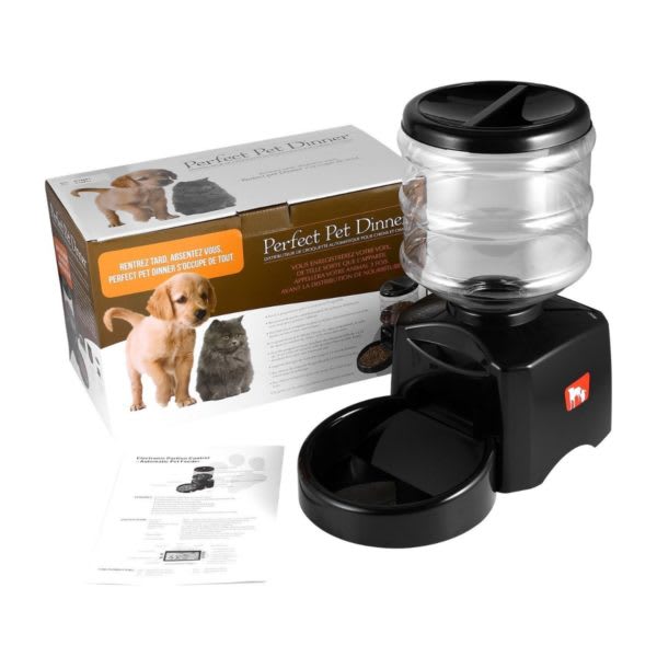Distributeur automatique qui facilite la livraison de portions journalières (1 à 3) pour chiens et/ou chats de manière flexible. Grâce à ses fonctions programmables de temps et de quantité, votre animal recevra une réponse appropriée au bon moment. Microphone et haut-parleur : Vous pouvez enregistrer votre voix pendant 12 secondes pour attirer l’attention de votre animal en lui demandant de venir manger pour vous rappeler. Des repas précis par jour : En fixant le bon volume de nourriture en fonction du poids par jour, vous créerez une bonne habitude alimentaire, à des heures régulières tout en maintenant la bonne alimentation. Ecran LED programmable. Contenance : 3KG de nourriture sèche. Couvercle avec fermeture anti-déversement à l’épreuve des animaux. Capteur infrarouge qui détecte la surcharge dans le plateau. Mémoire programmable jusqu’à 99 jours. Fonctionne avec de grandes piles de type D (non incluses).