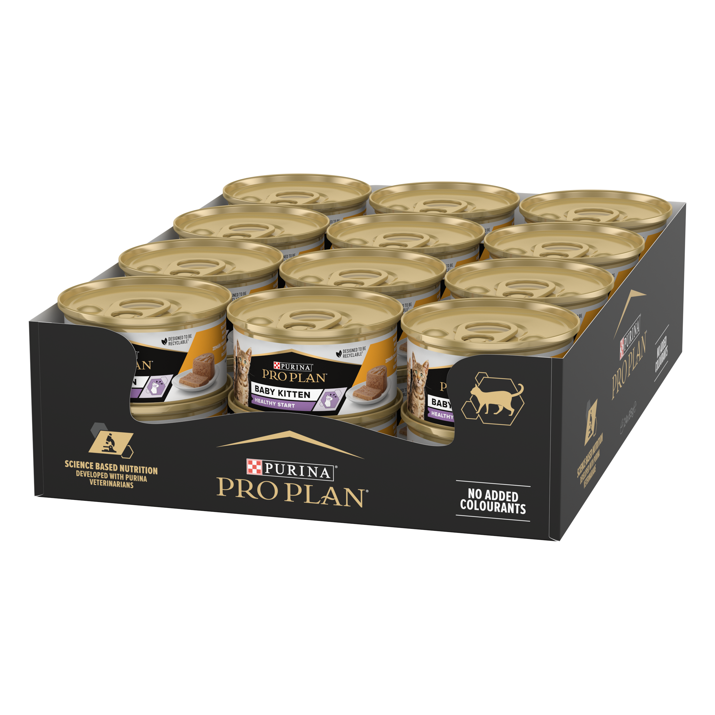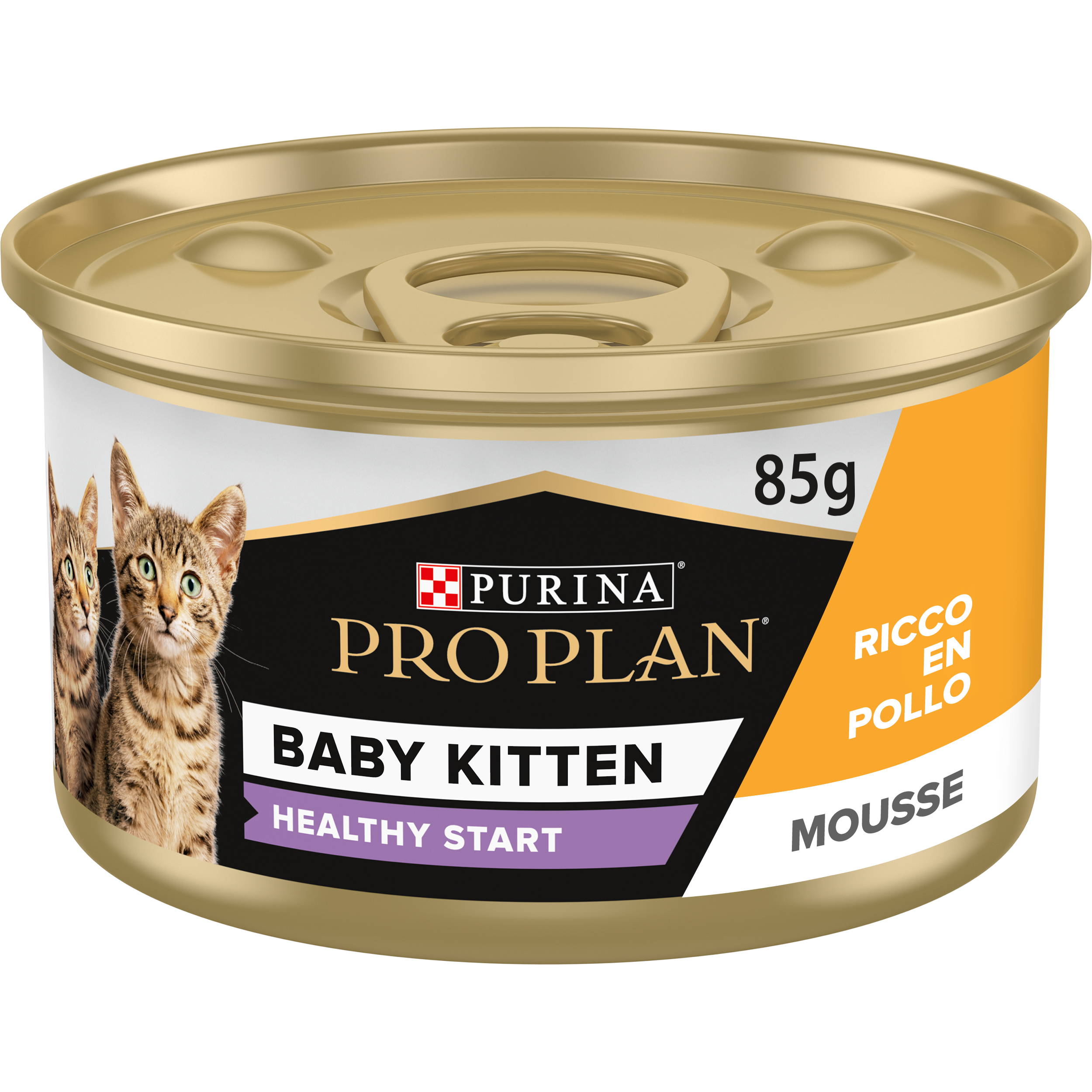 PURINA® PRO PLAN® Baby Kitten HEALTHY START Mousse Riche en Poulet est un aliment complet composé d'une délicieuse mousse riche en poulet. Il est formulé spécifiquement pour le sevrage des chatons 1er âge. Convient également aux chattes en gestation ou allaitante.