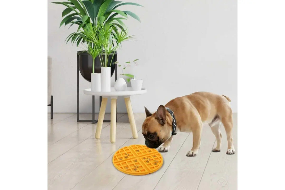 Utilisez le tapis à lécher AFP Calming Pals - Woofle pour permettre à votre chien de profiter de la nourriture ou d'autres friandises de manière calme. Grâce aux compartiments pratiques, le chien doit faire plus d'efforts et éviter les sursauts. De plus, le tapis à lécher offre également une solution pour réduire l'ennui ou le stress et le tapis peut être utilisé avec des aliments secs et humides. Par exemple, étalez-y du yaourt ou du beurre de cacahuète. Grâce aux ventouses puissantes, l'AFP Calming Pals - Woofle Lick Mat peut être fixé sur n'importe quelle surface !